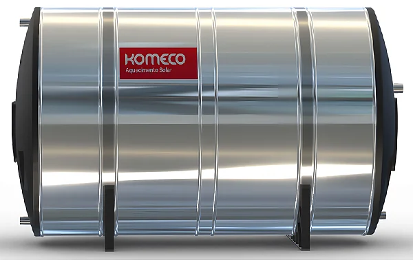 A nova capa do Reservatório Komeco é produzida em alumínio por dentro e por fora. Desse modo, aumentando a vida útil do produto. Isso porque o alumínio não oxida (enferruja) e diminui o peso do produto, facilitando a sua instalação. Sua nova cinta é produzida com aço inox 430 e com alumínio conformado, garantindo maior robustez e praticidade. Possui a base do reservatório em material polimérico, resistente a corrosão.